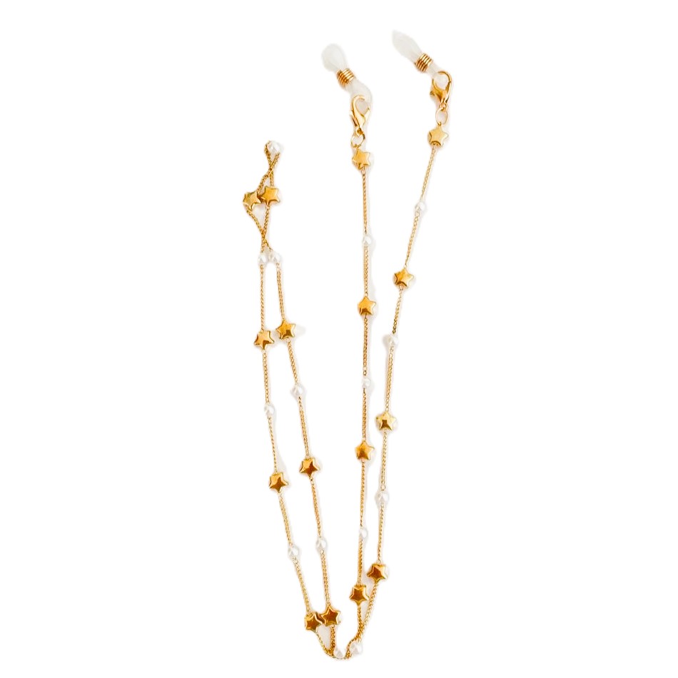 Cordón cadena dorado estrellas y bolas nácar